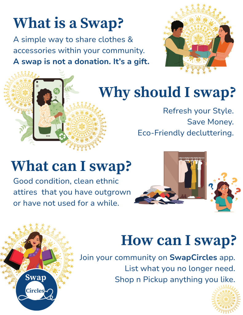 SwapCircles is a community-led recirculation solution for good-condition clothes and accessories — reducing waste, saving hard-earned money, and building a clean, equitable future, all while proudly celebrating our cultural roots with responsibility.